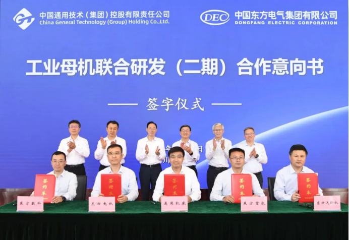 9月29日,通用技術集團董事長、黨組書記于旭波,總經理、黨組副書記崔志成,副總經理、黨組成員賈大風率隊拜訪東方電氣集團,與東方電氣集團簽署電力領域高端工業母機聯合研發(二期)合作意向書。集團總工程師、機床公司董事長、黨委書記周舟代表通用技術集團簽署合作意向書。機床公司,集團科技創新與數字化部、協同發展部相關負責人出席活動。